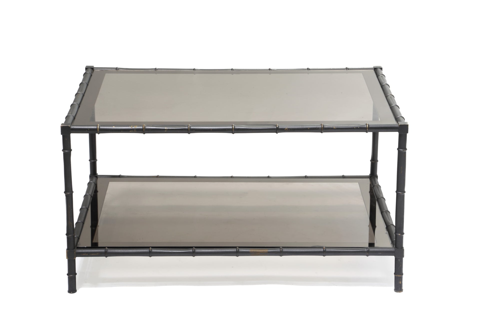 Pair of 1970s bedside tables in green velvet and smoked glass