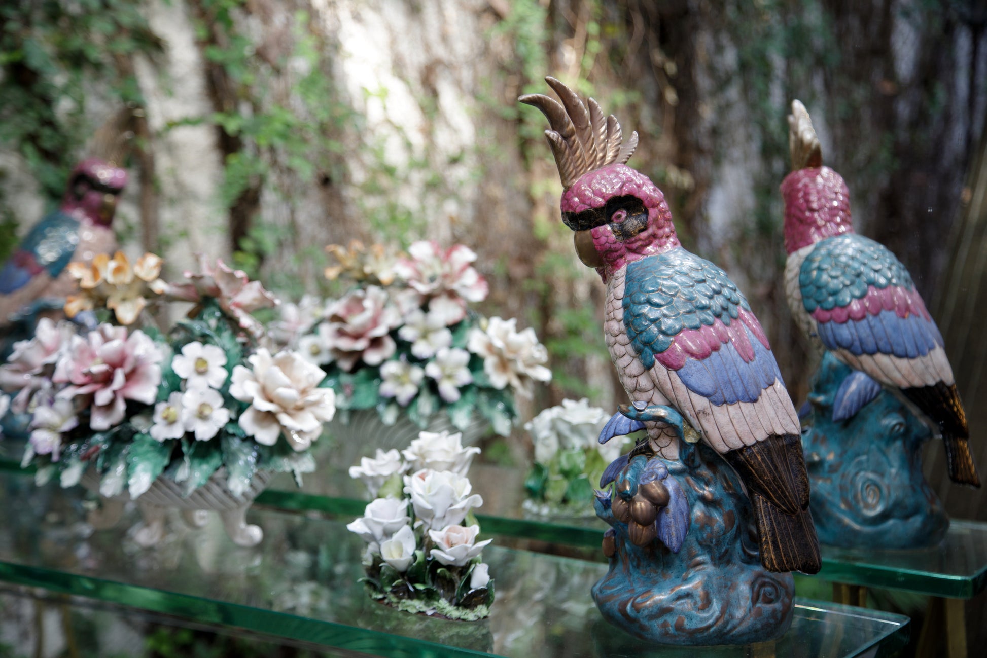 Pair of Japanese Satsuma Ceramic Parrots