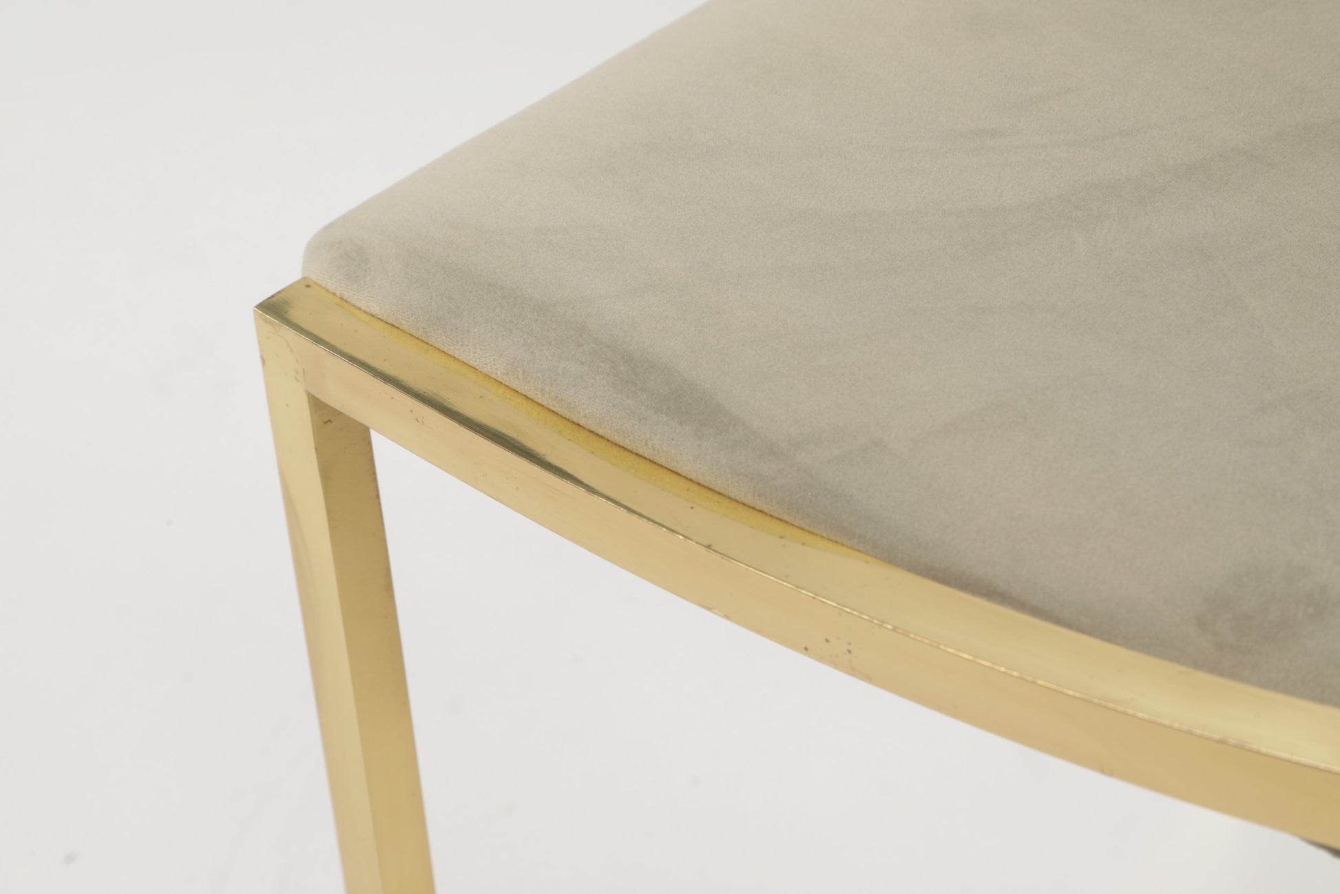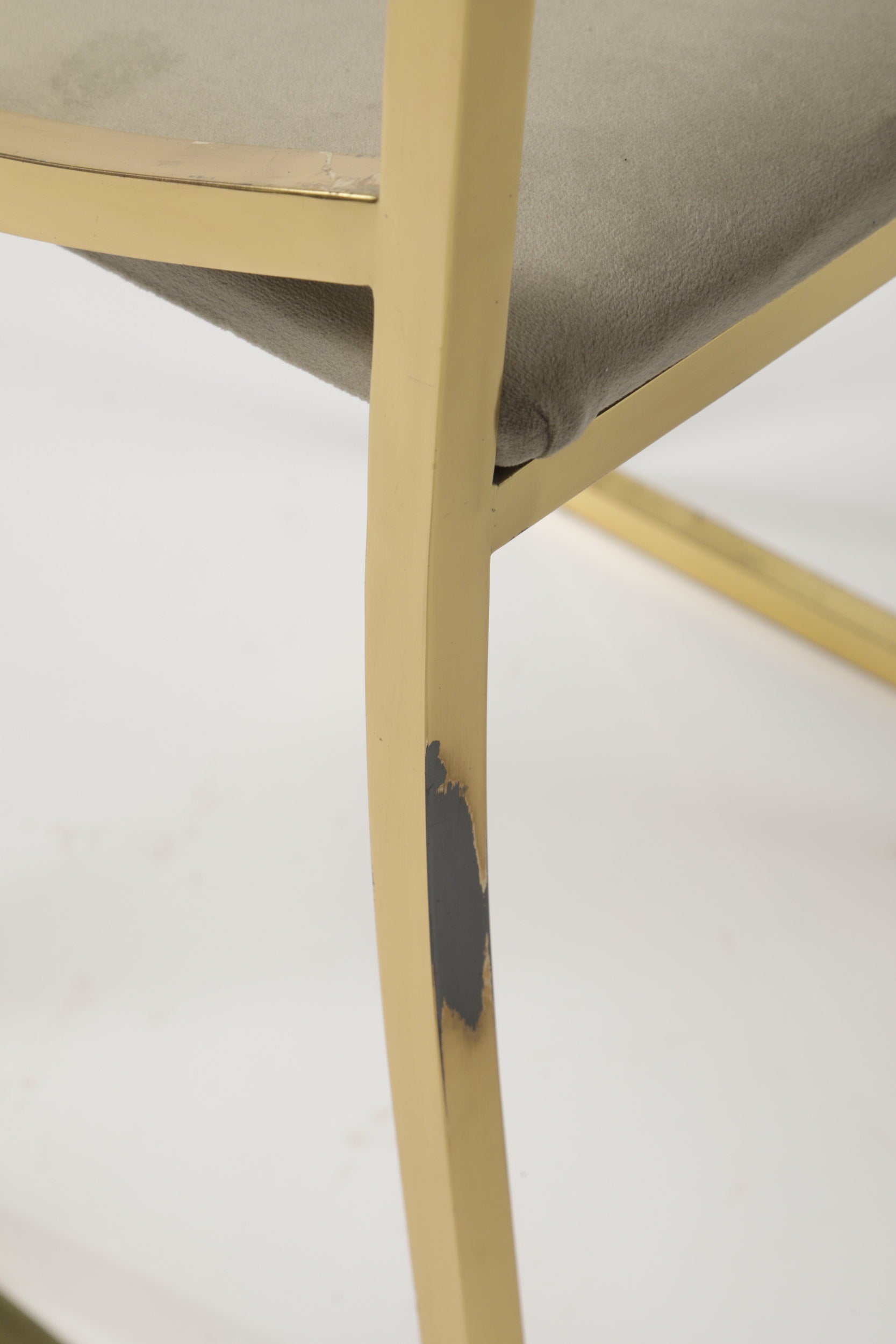 4 sedie anni 70, struttura in ottone con seduta e schienale reinterpretato t r i p l e f in velluto grigio ghiaccio. Produzione Italiana.