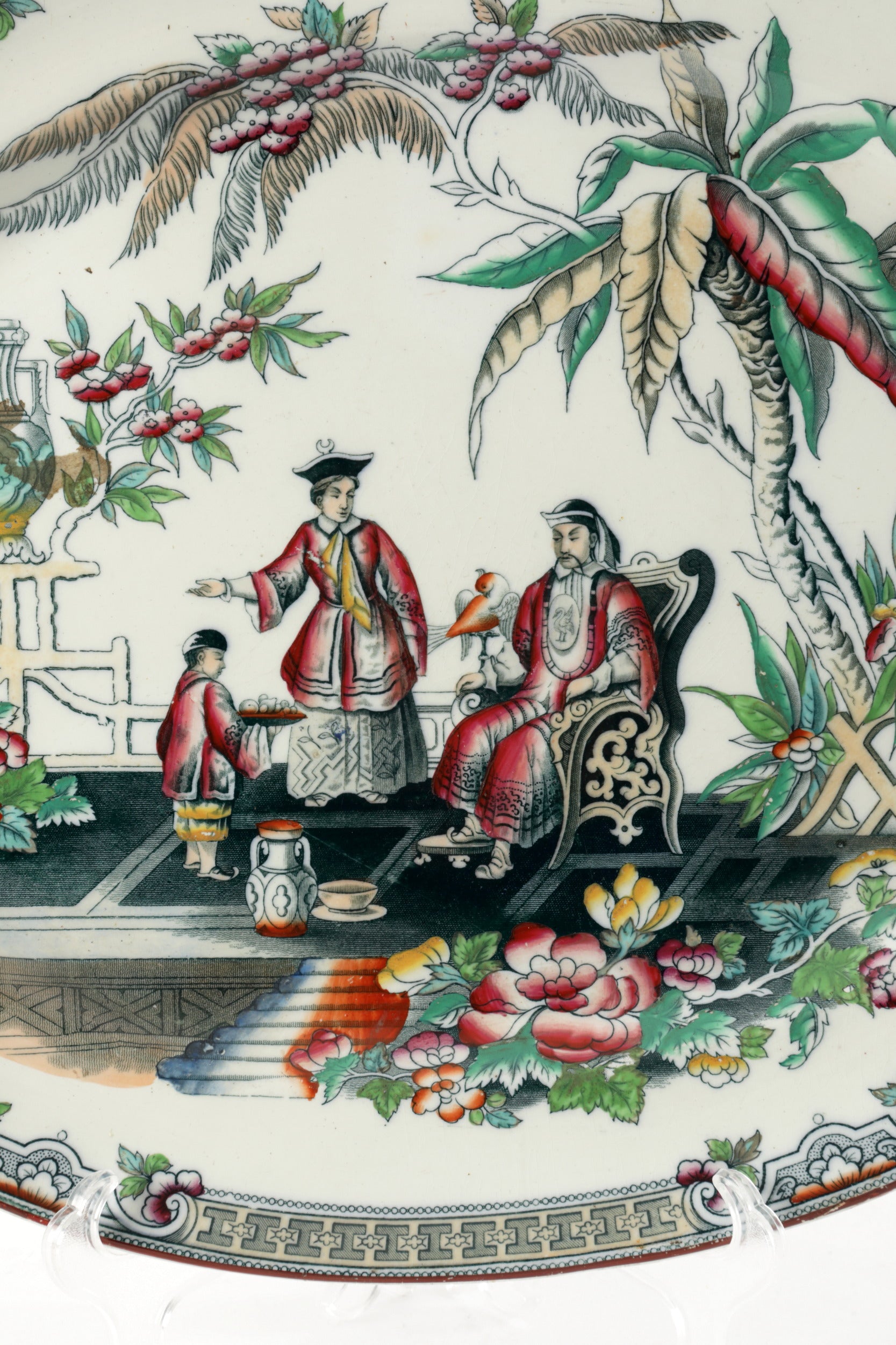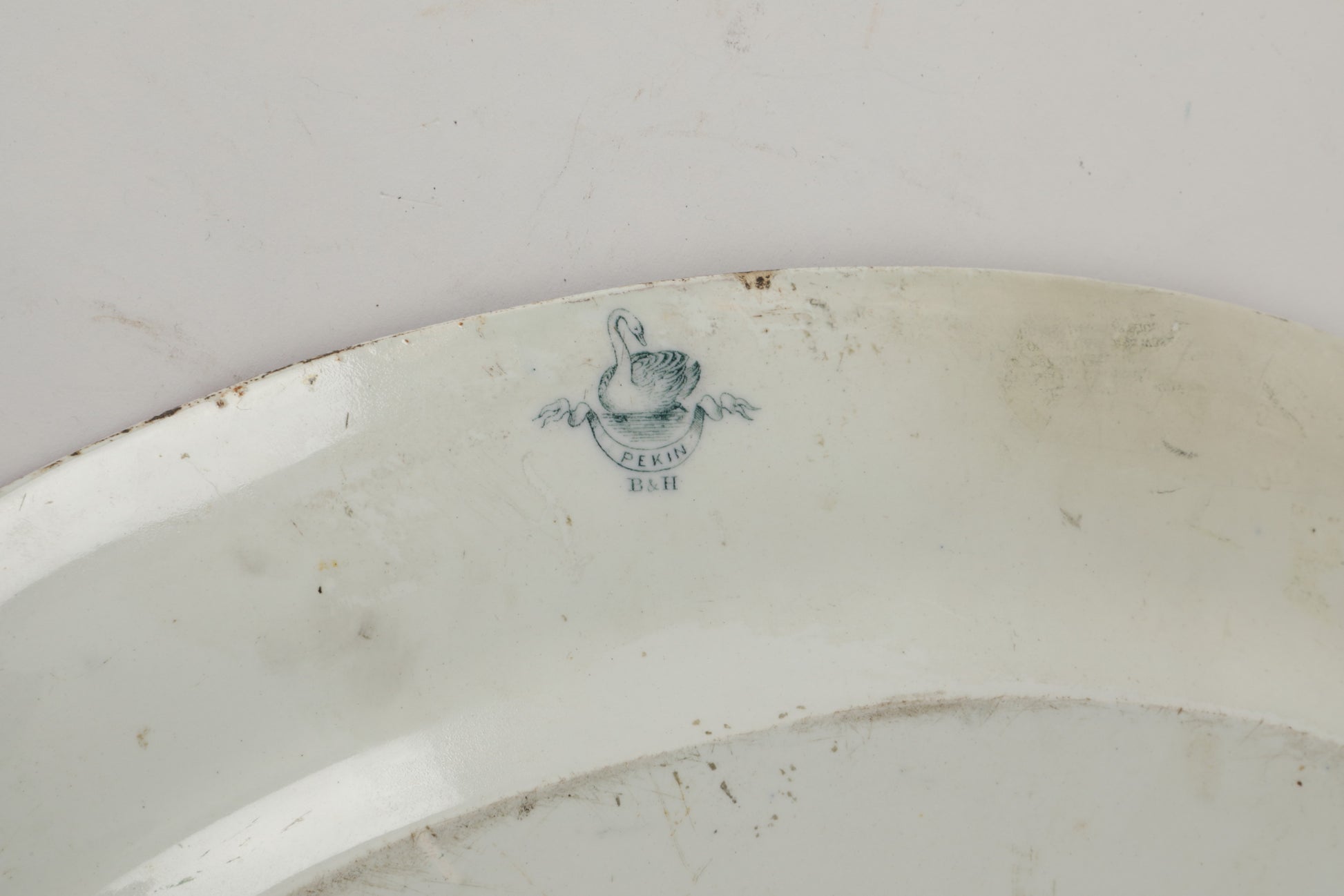 Oval porcelain centerpiece from the early 1900s with oriental-style decorations. Made in England.