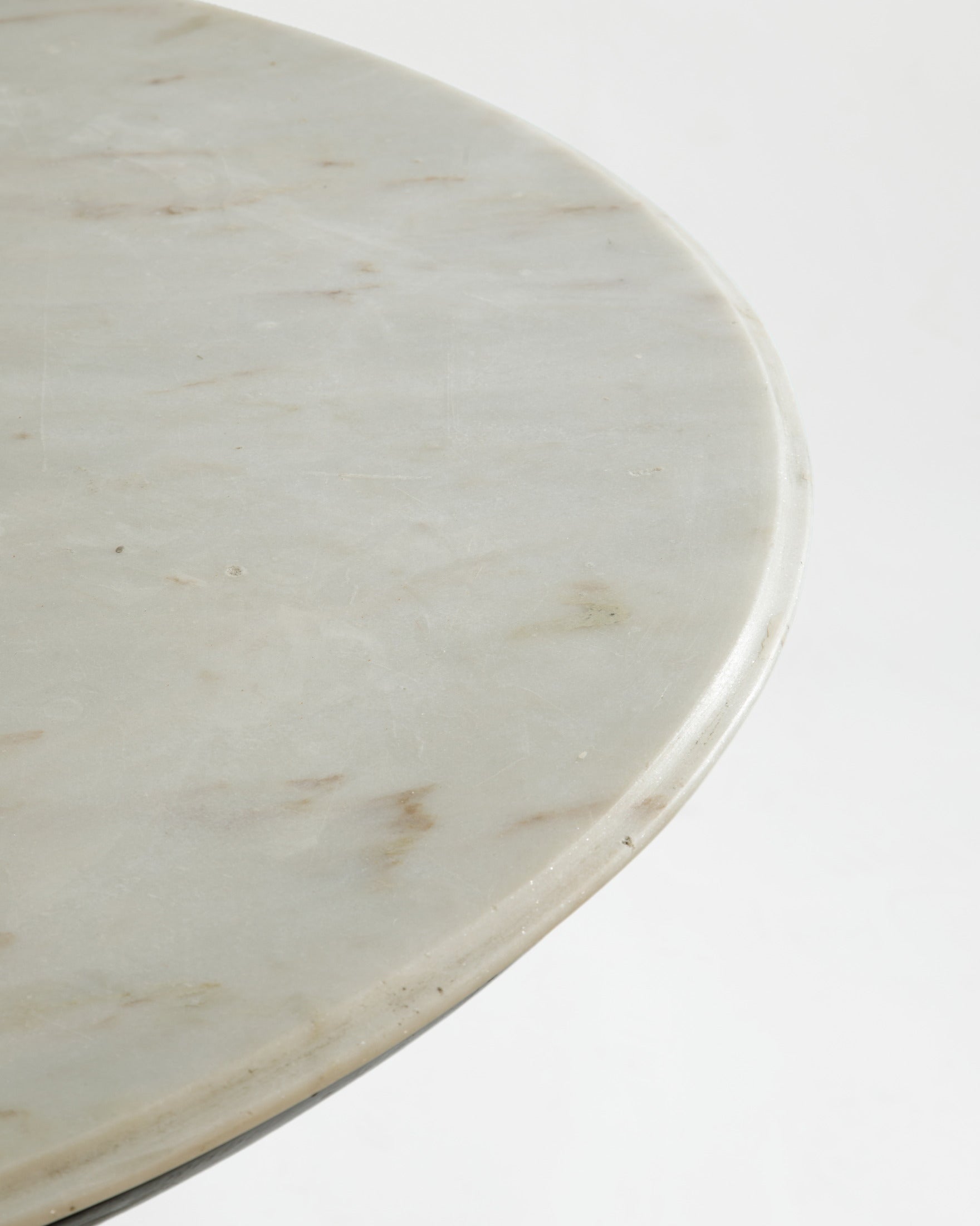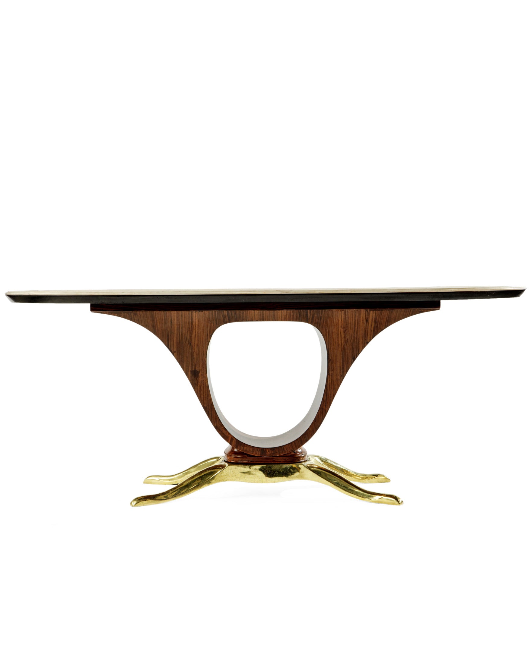 Large 1950s coffee table, walnut frame with cast brass legs and oval white marble top. Made in Italy by Fratelli Marelli.
