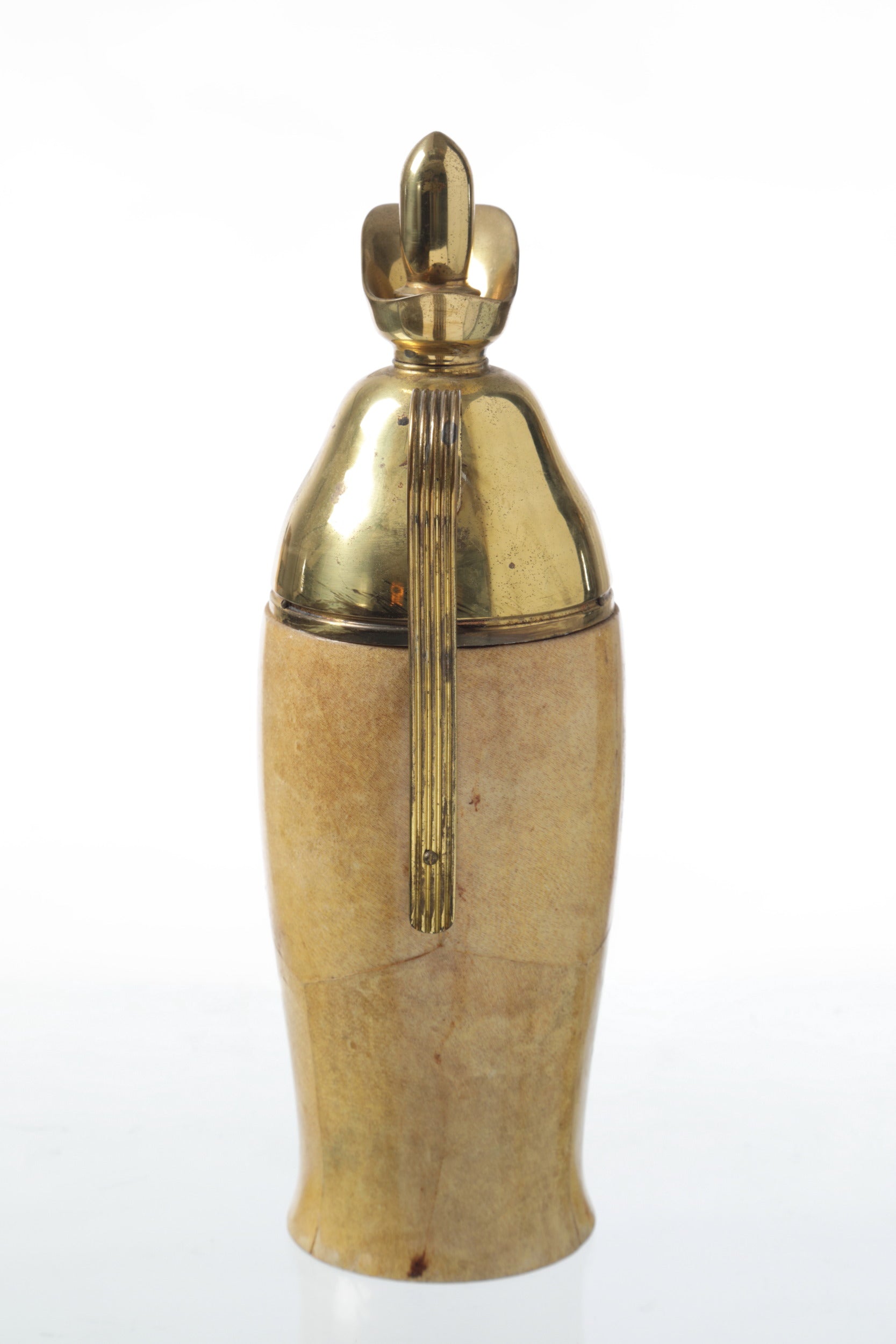Caraffa anni 60, in pergamena avorio e ottone, disegnata da Aldo Tura per Macabo. Produzione Italiana.