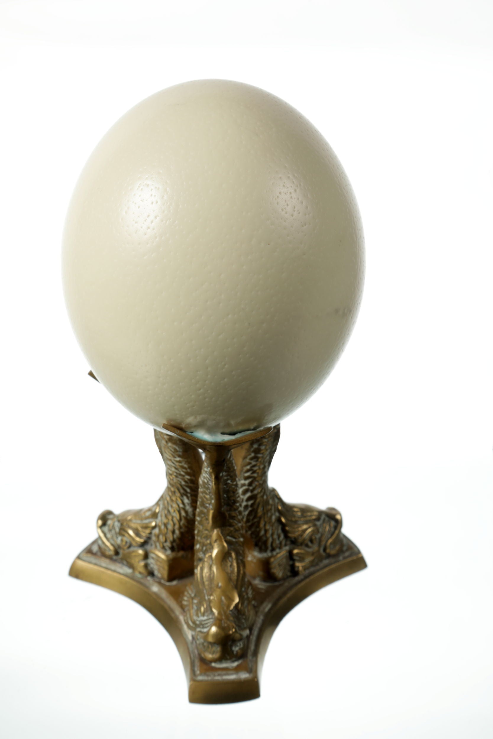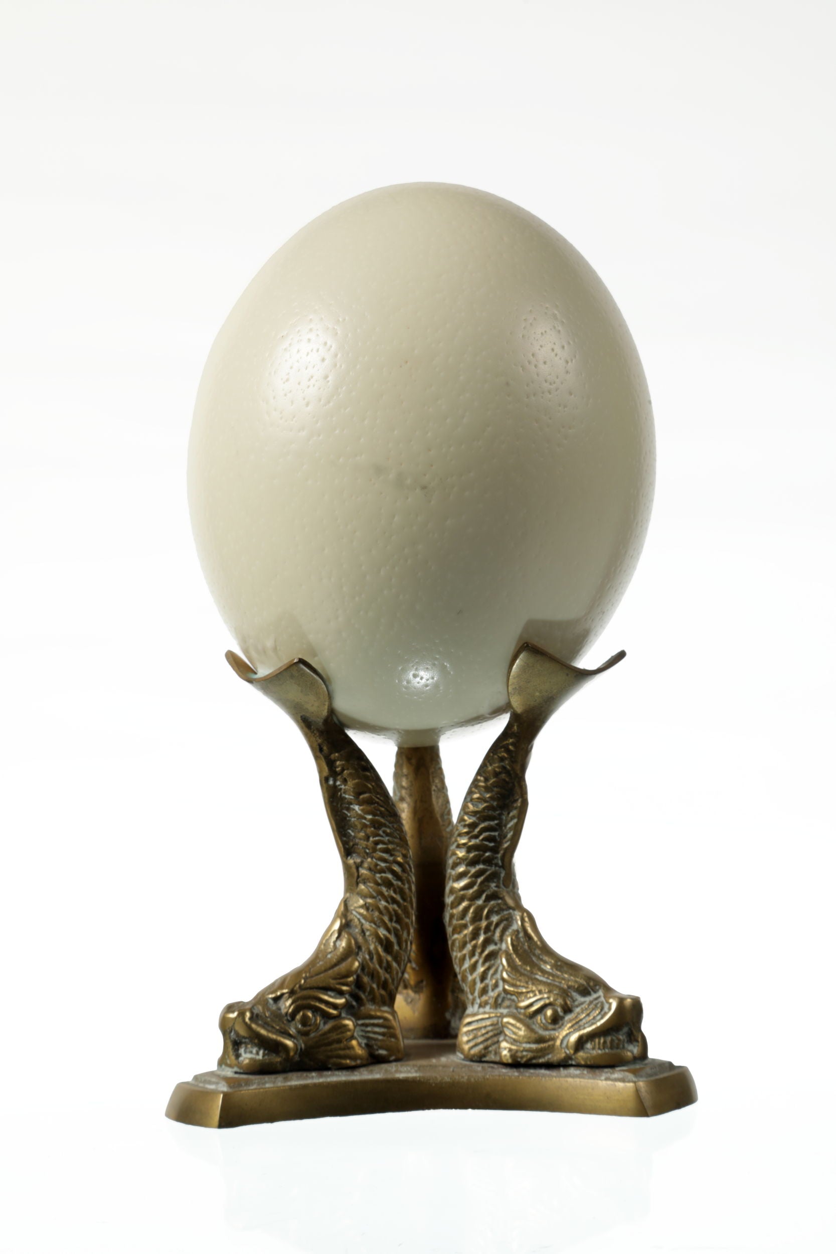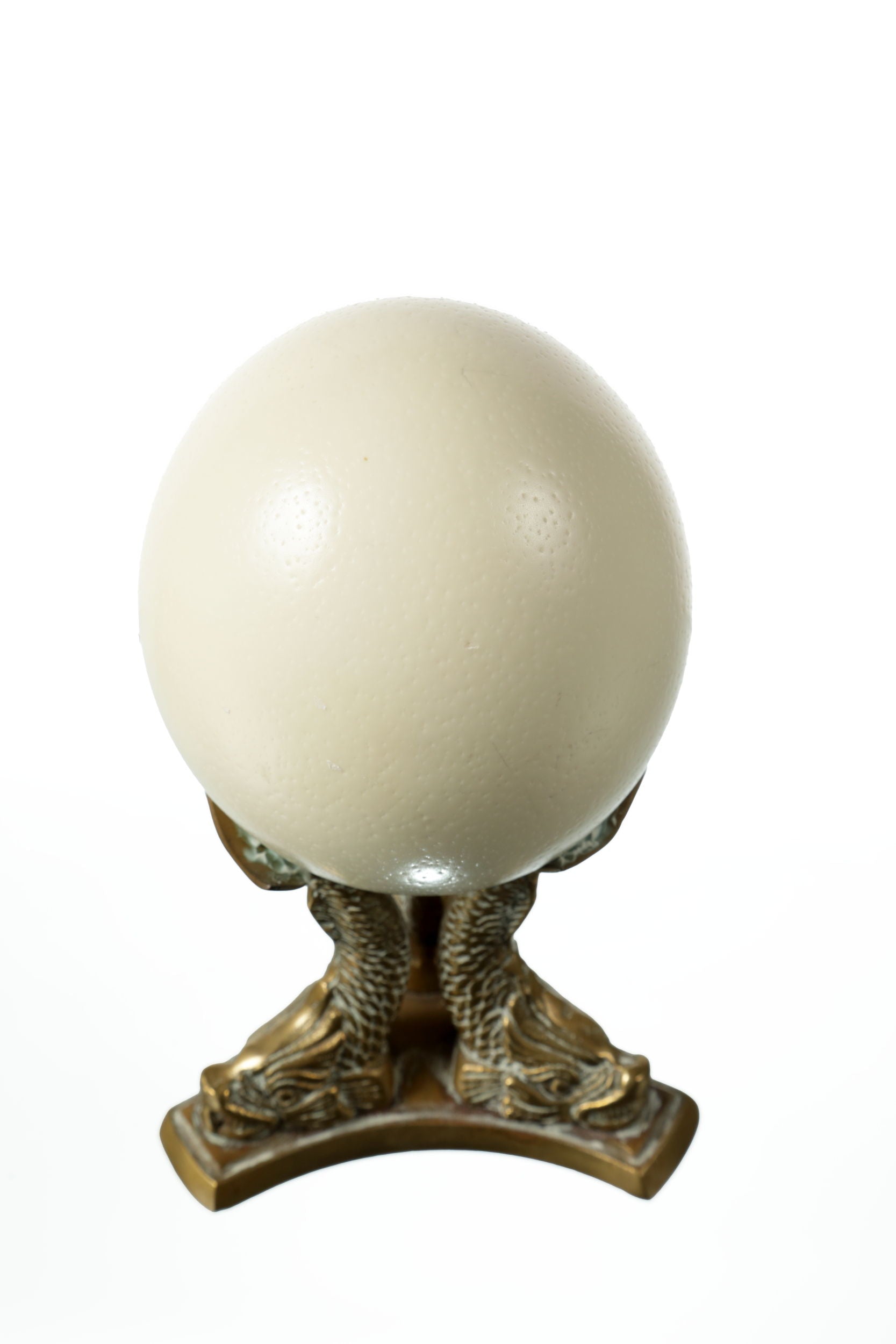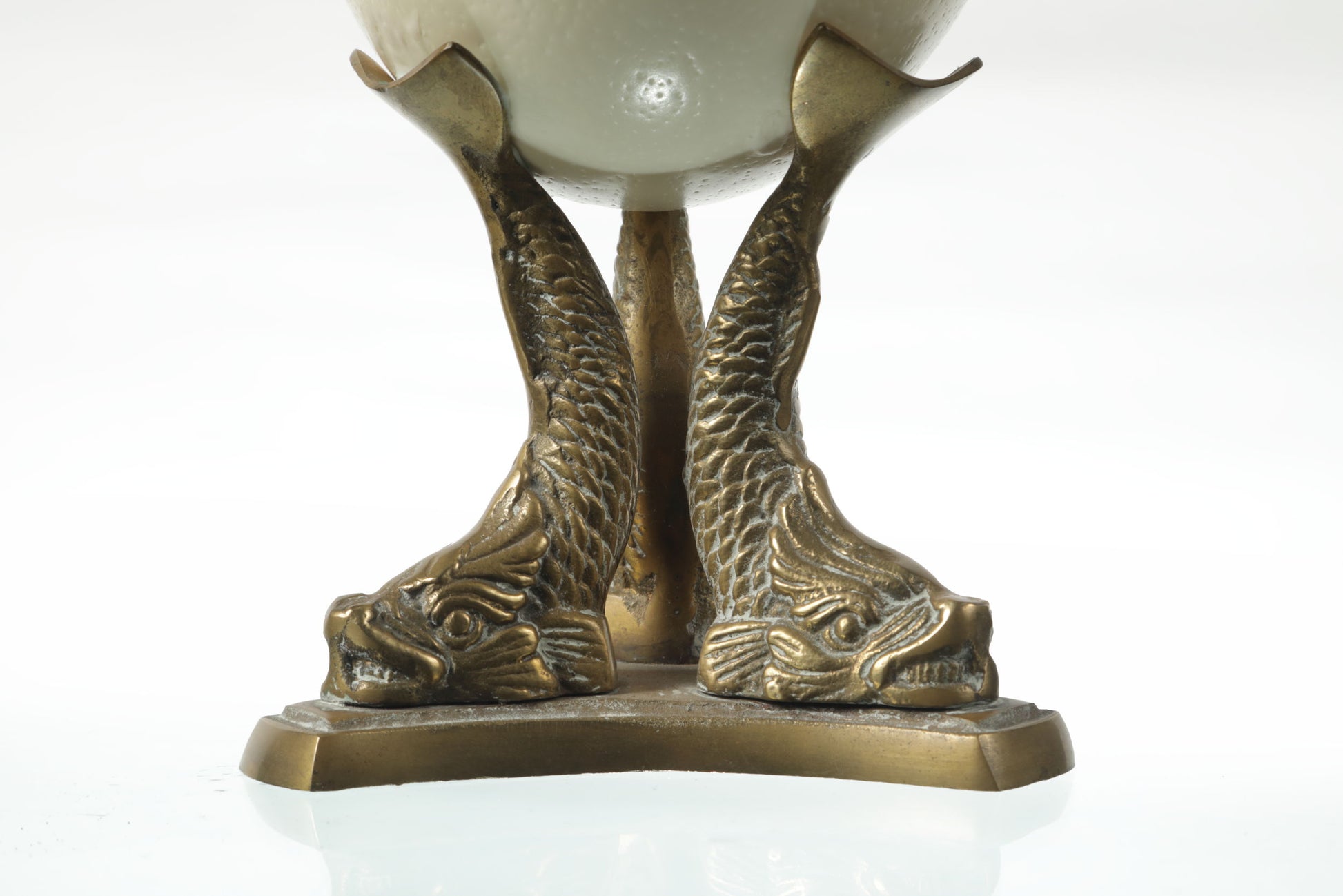 Centrotavola anni 70, base in ottone con decoro marino con uovo di struzzo. Produzione Italiana.