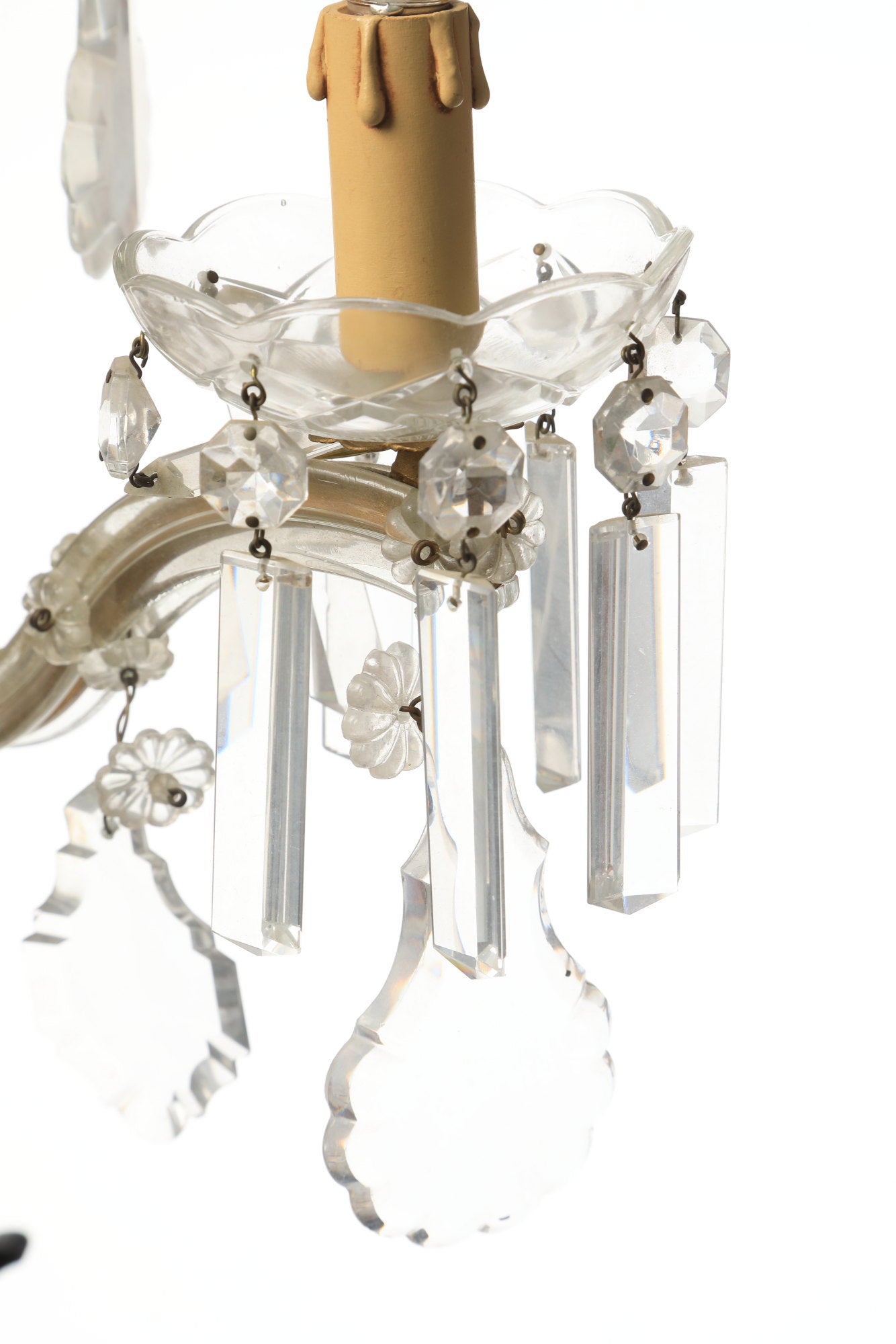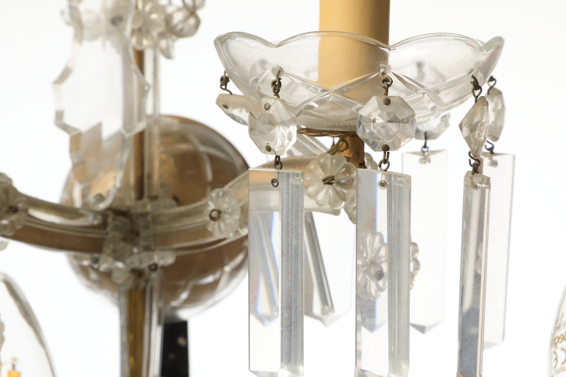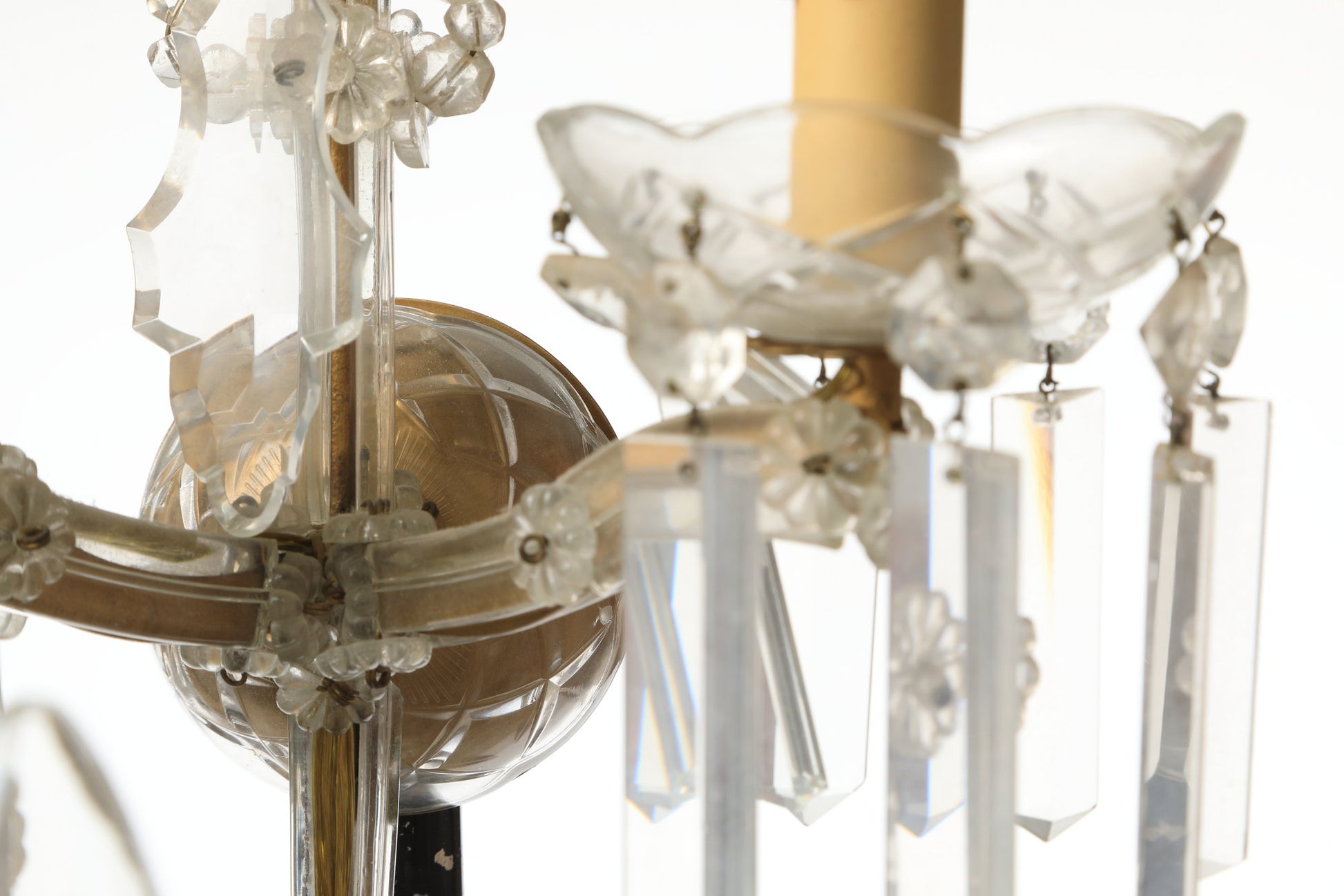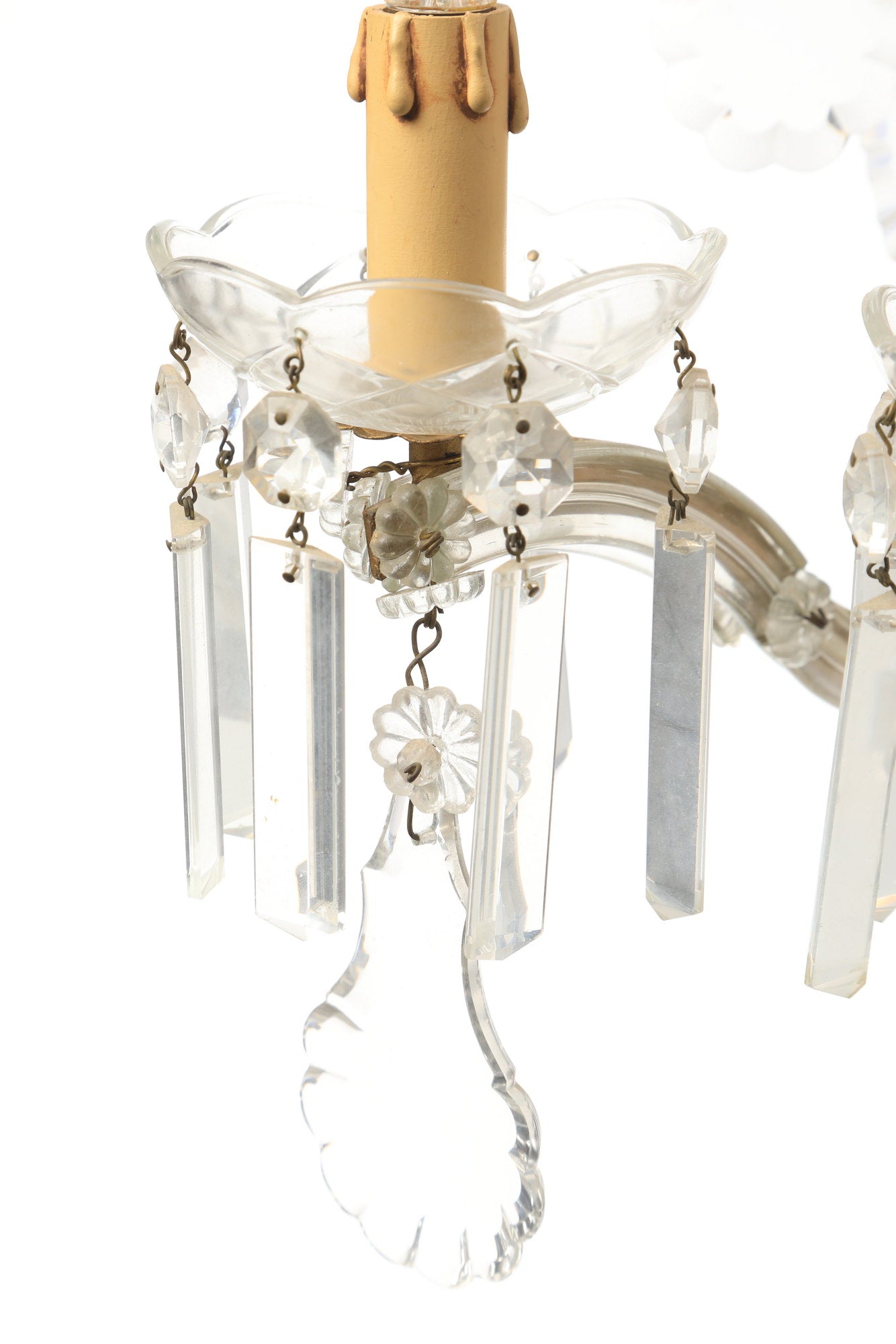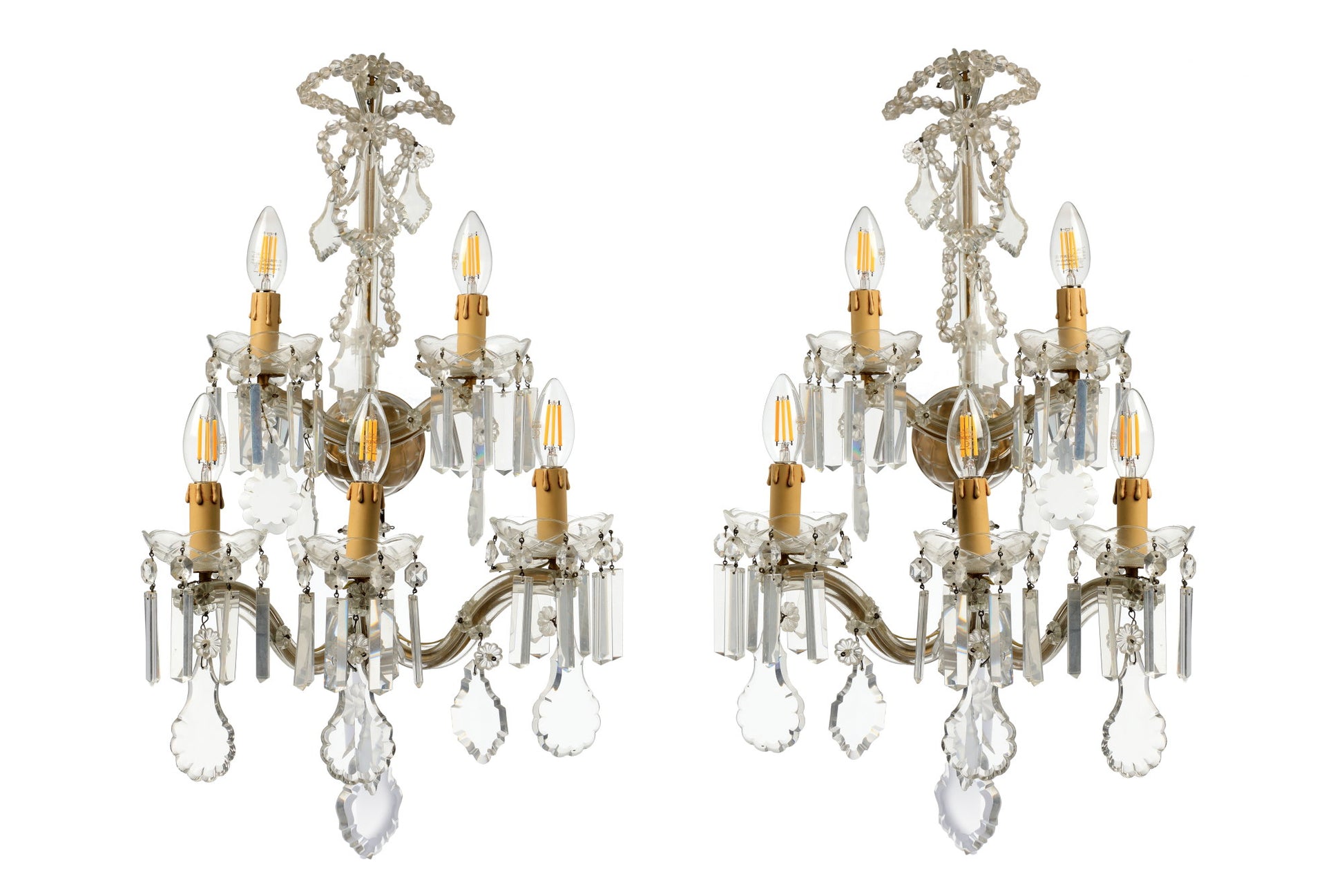 Coppia applique Cristallo di Bohemia 5 luci con gocce e stalattiti molate, piccole imperfezioni.