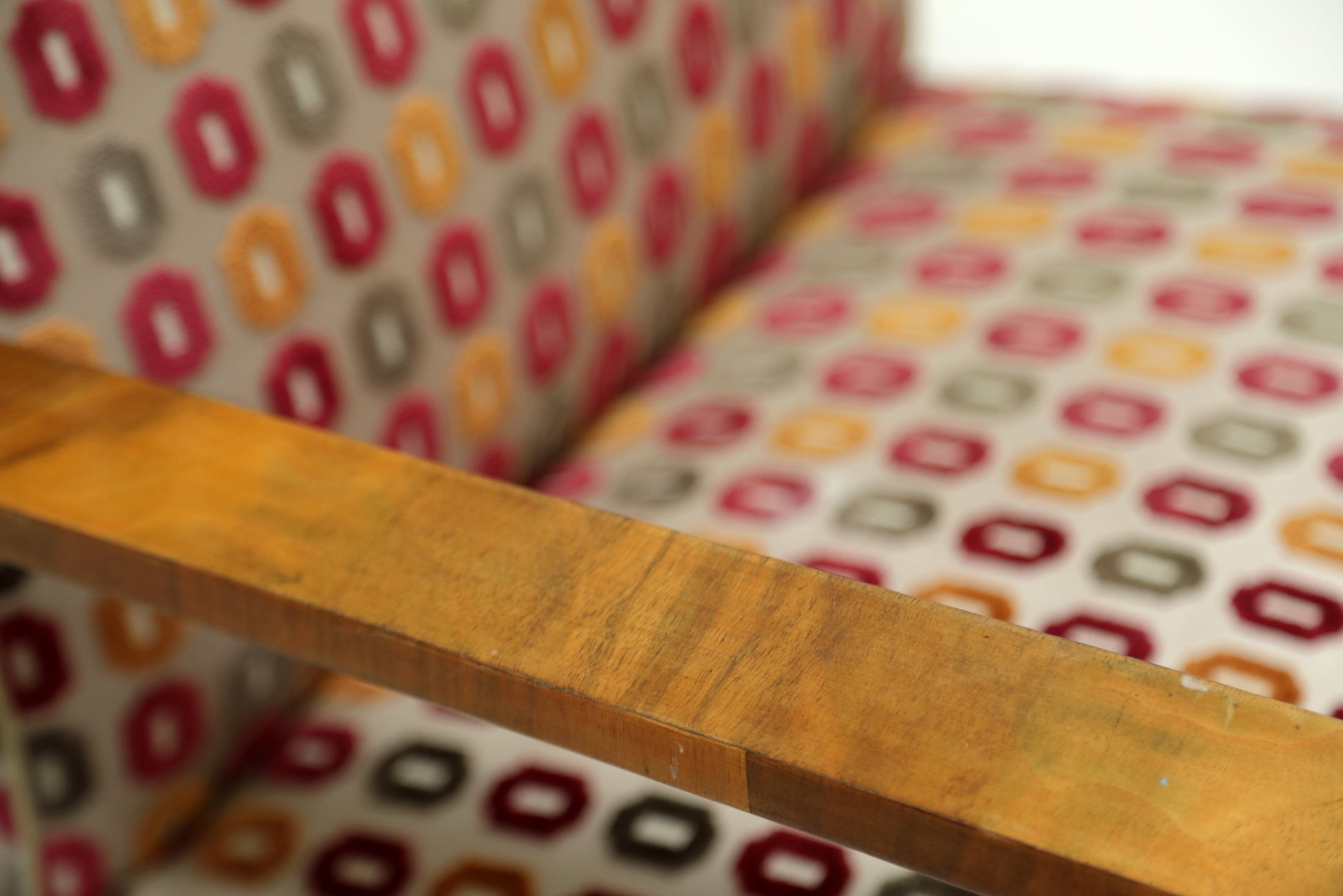 Coppia poltrone anni 40, struttura in noce con seduta e schienale in velluto devorè.