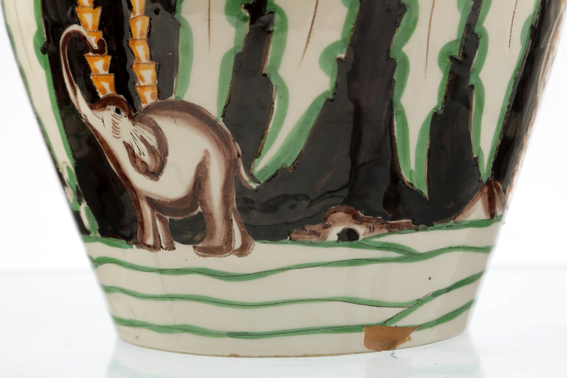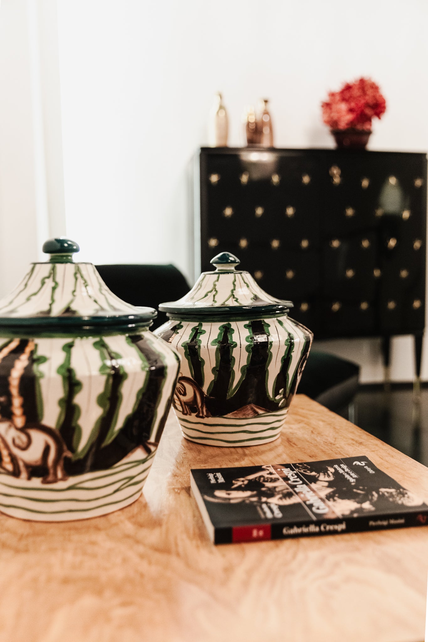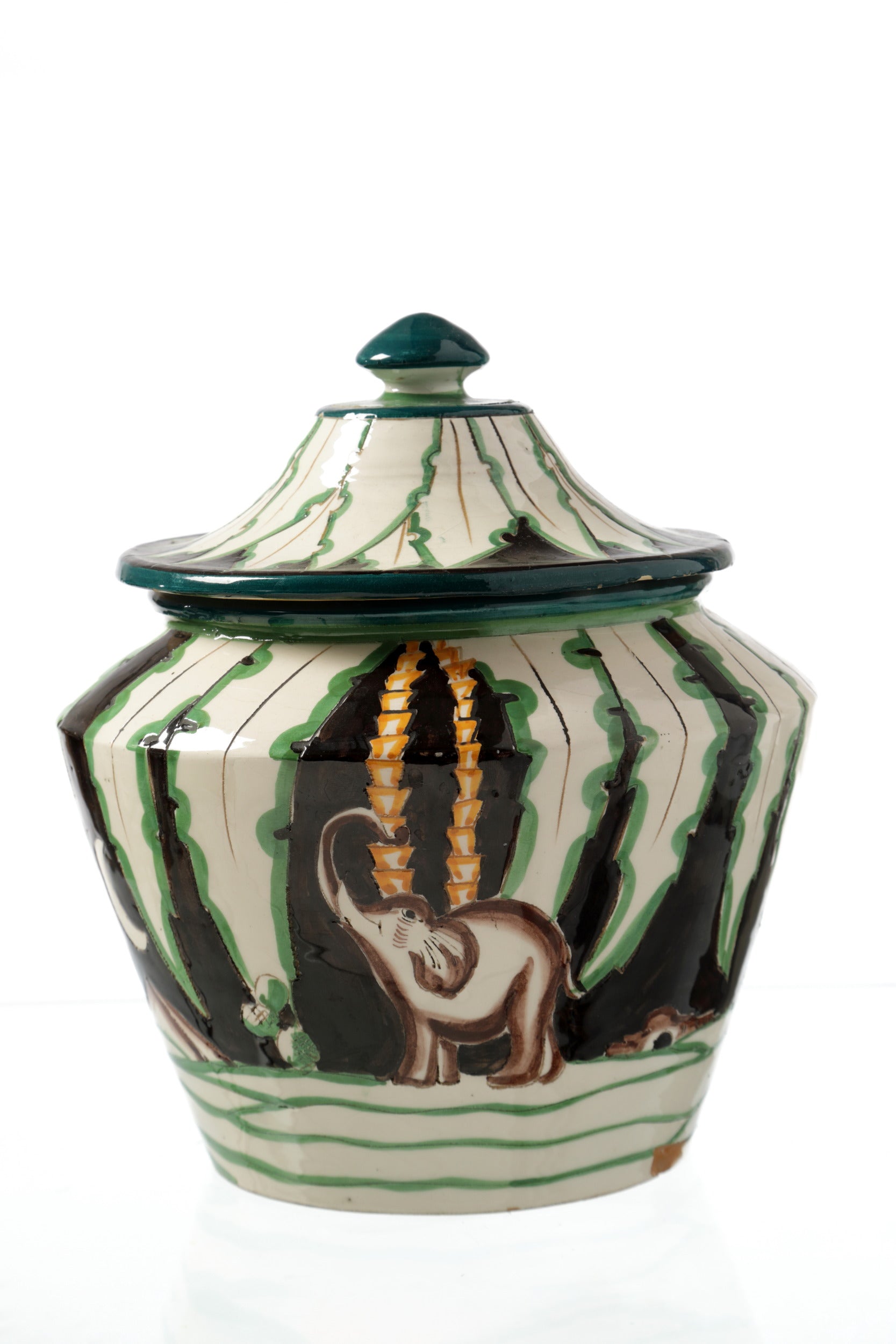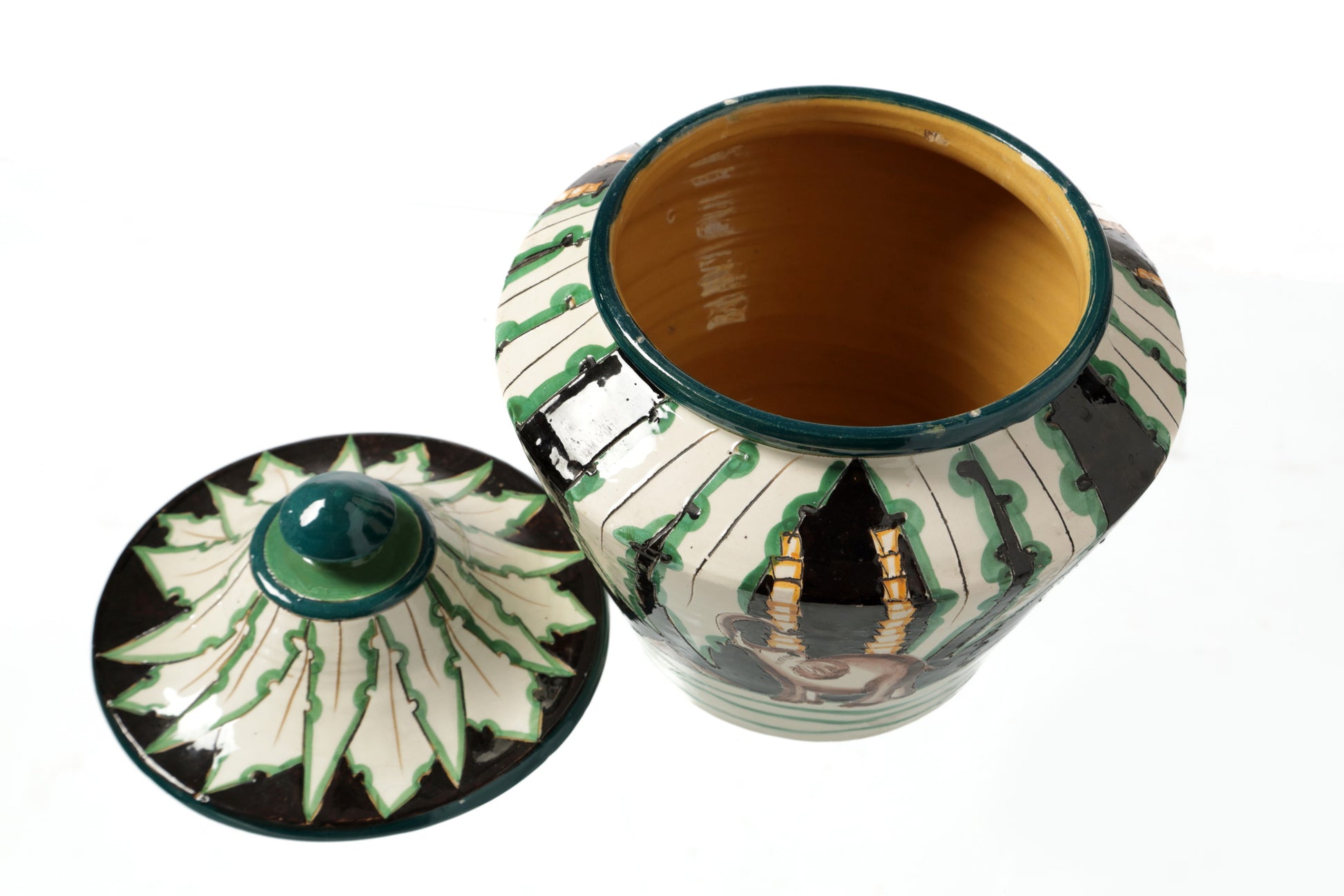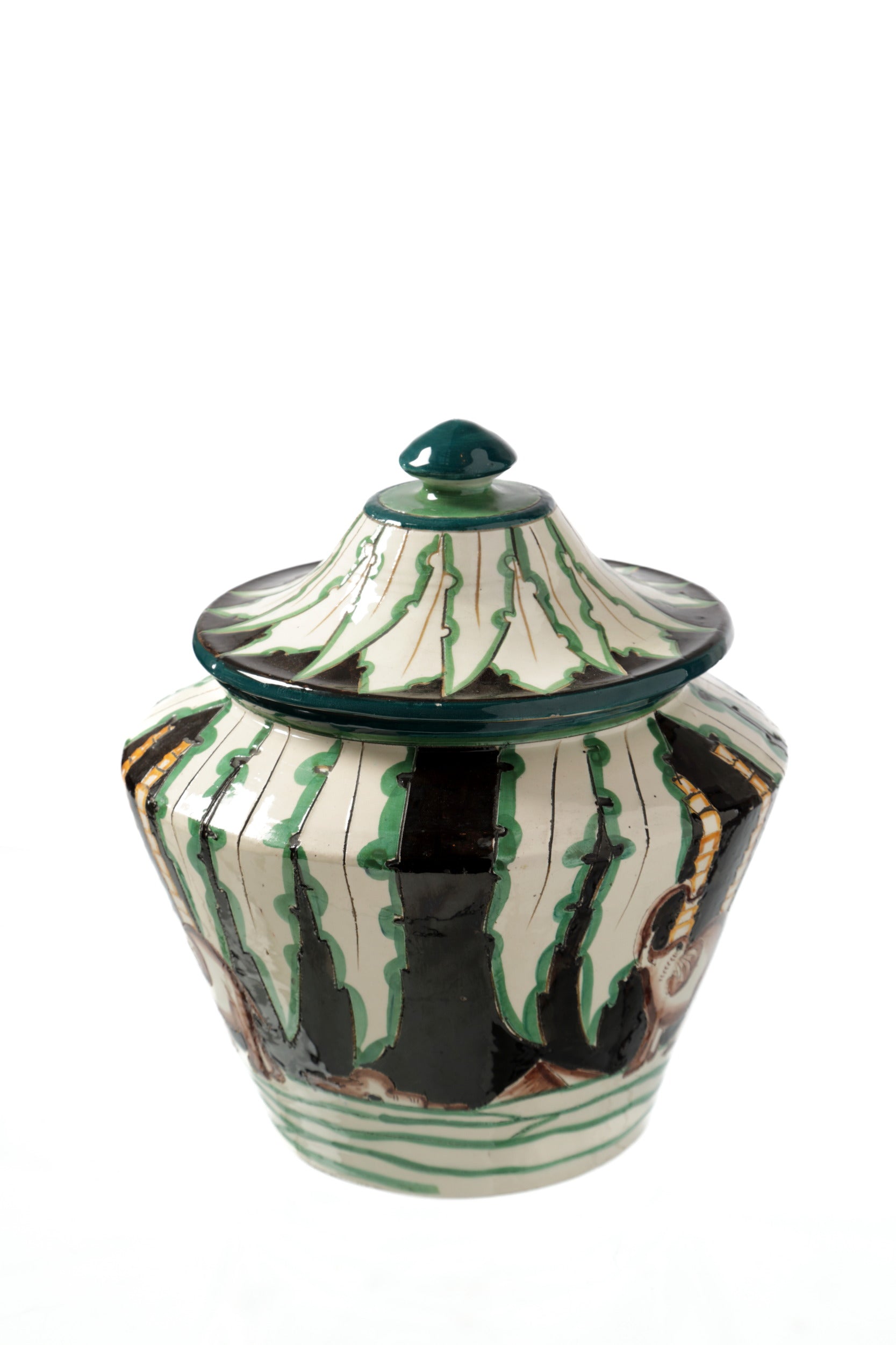 Coppia potiche anni 50 , in maiolica incisa e dipinta a mano. Produzione Italiana, Albisola.