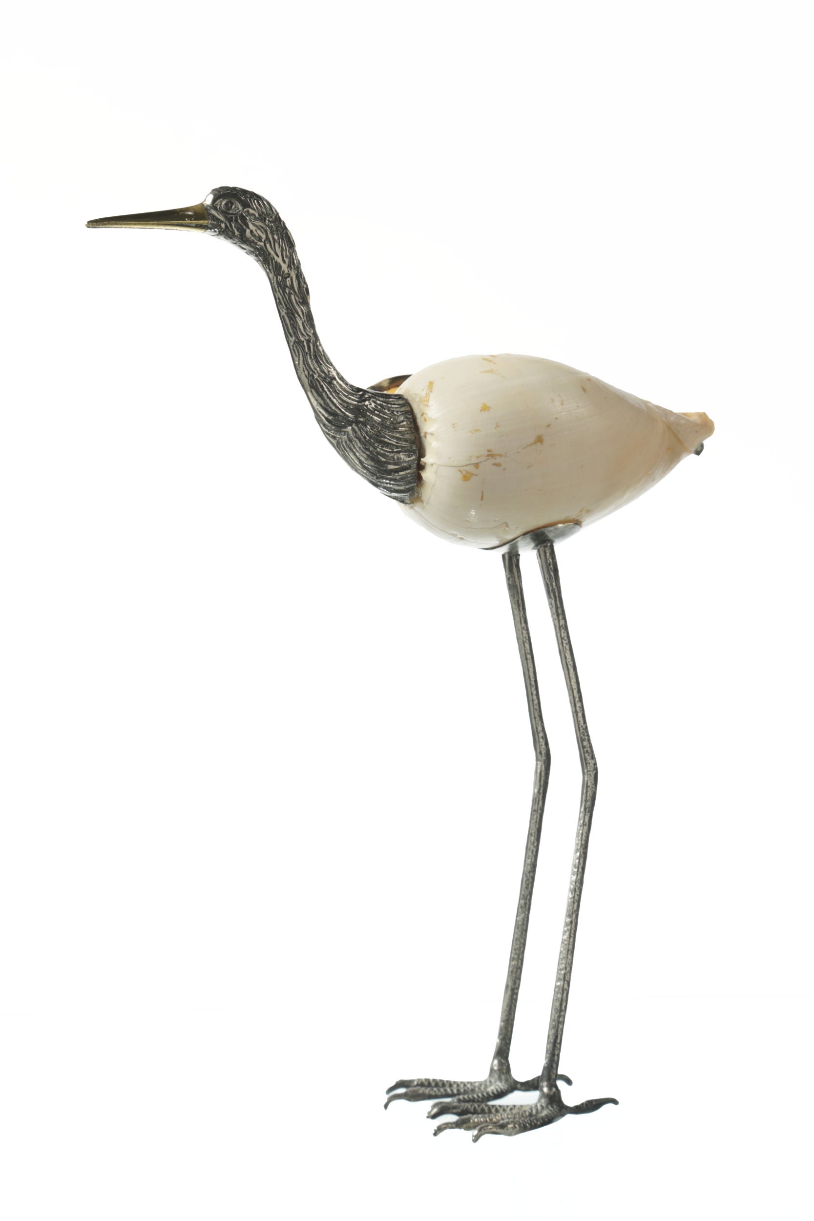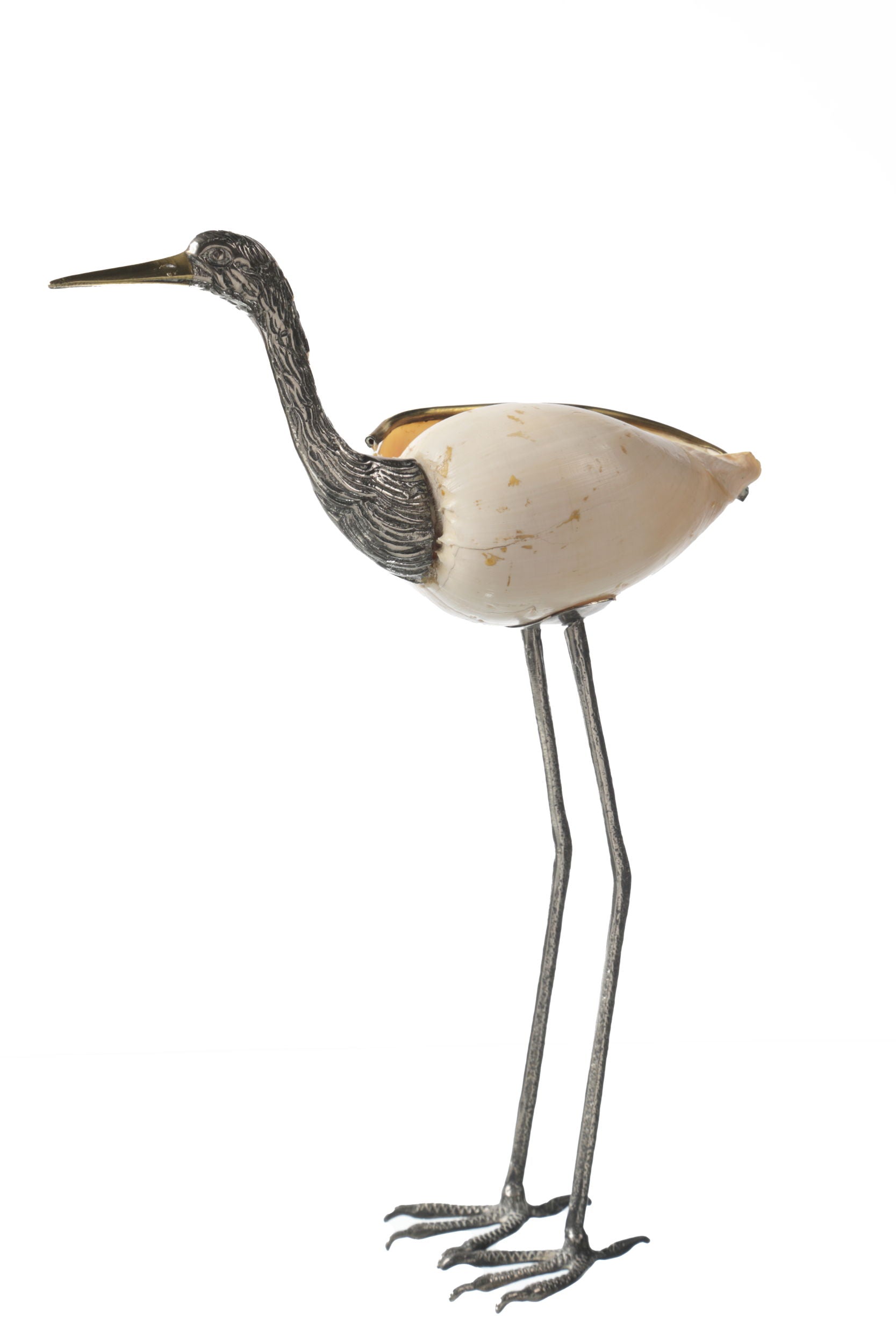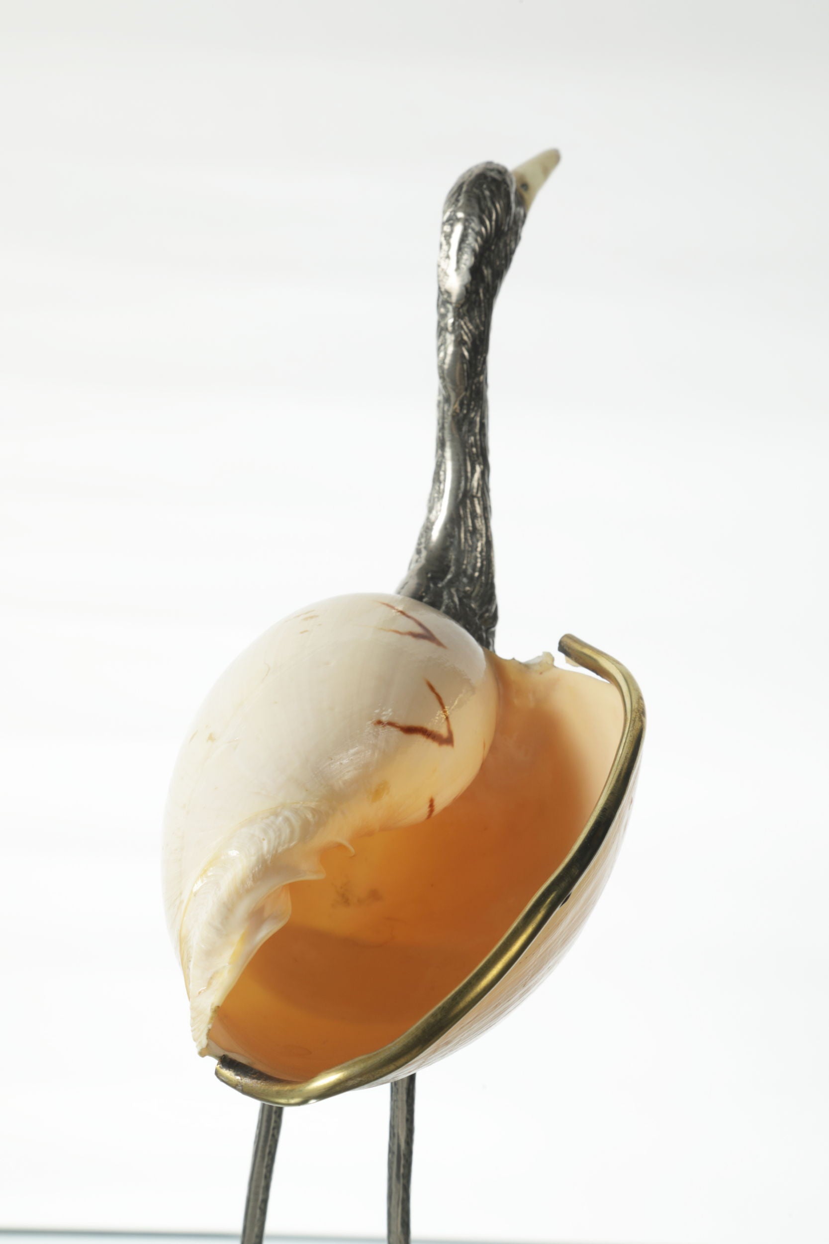 Fenicottero anni 70, in ottone con bagno argento e conchiglia. Priduzione Italiana.