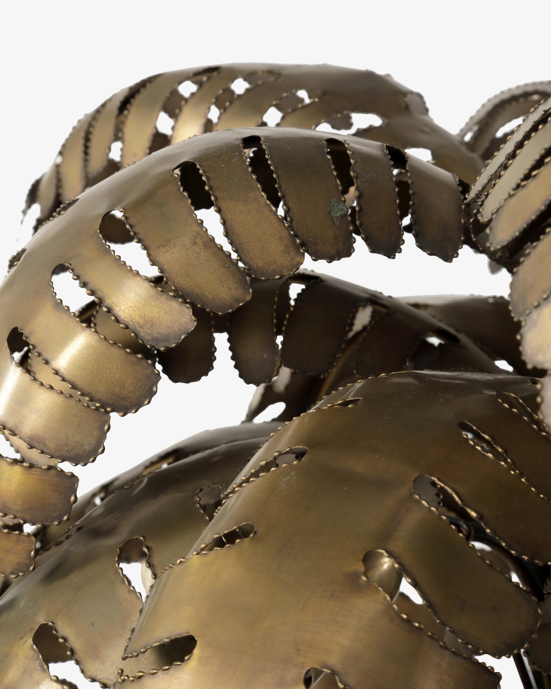 Lampada a forma di palma attribuita a Maison Jensen anni 70, tronco e fronde in ottone, fioriera cubica in vetro nero e pannelli in ottone.