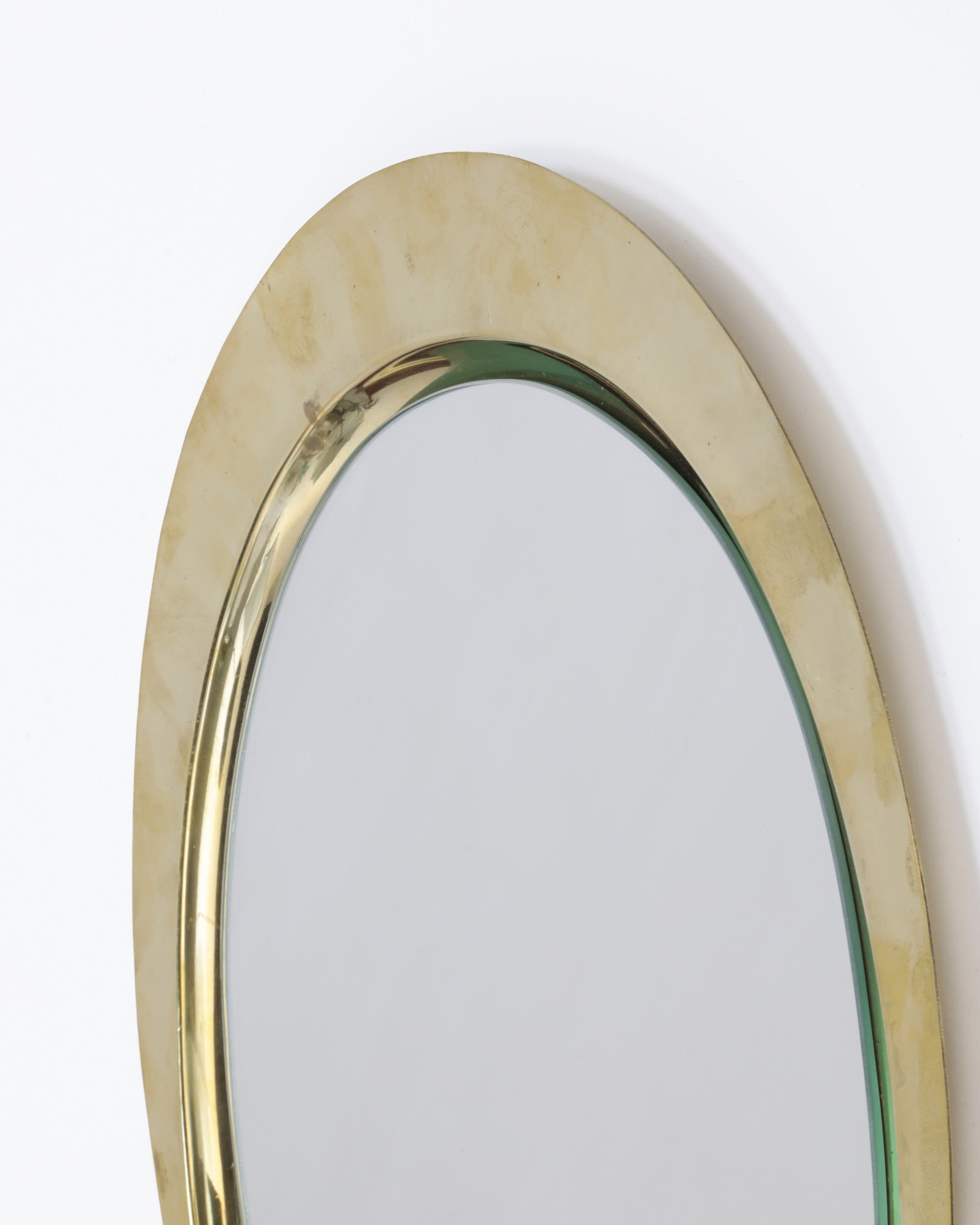 Piccola specchiera anni 70, cornice ovale in ottone martellato. Produzione Italiana.