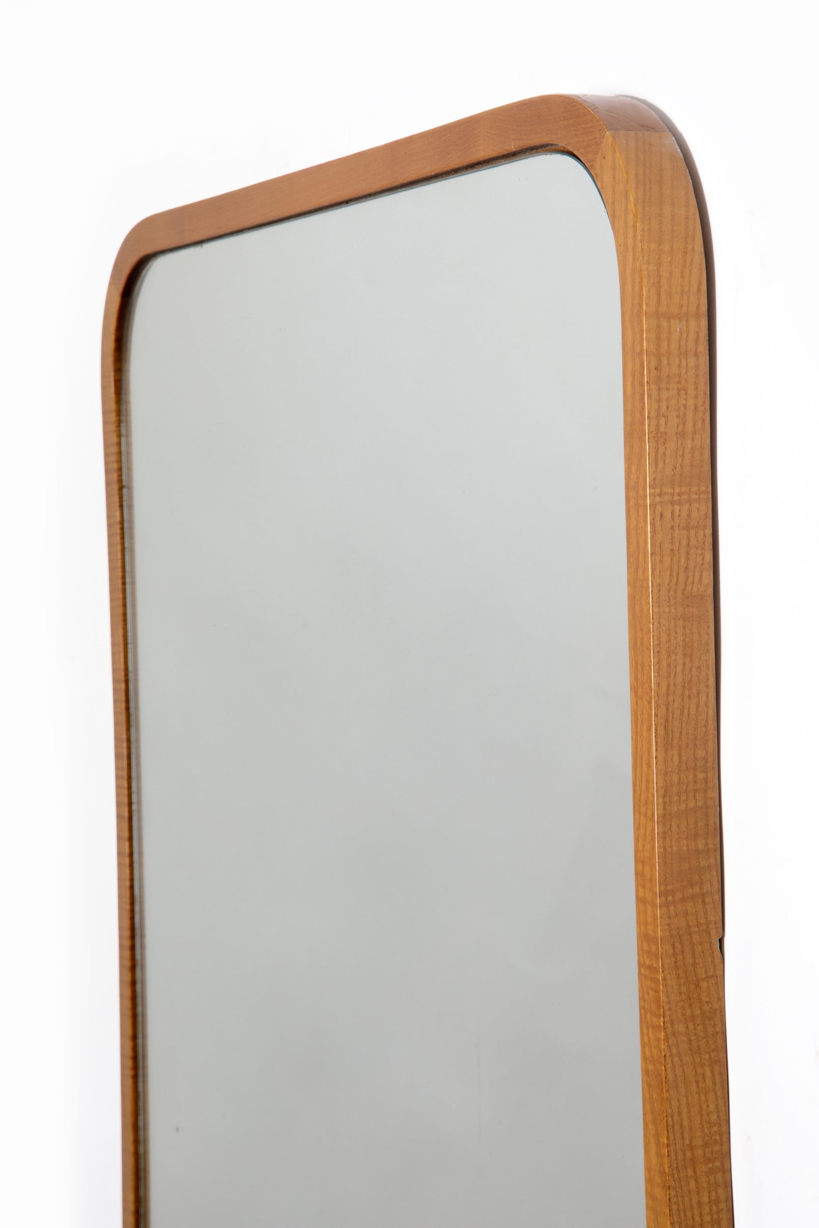 Specchiera anni 50, cornice stondata in legno biondo. Produzione Italiana.