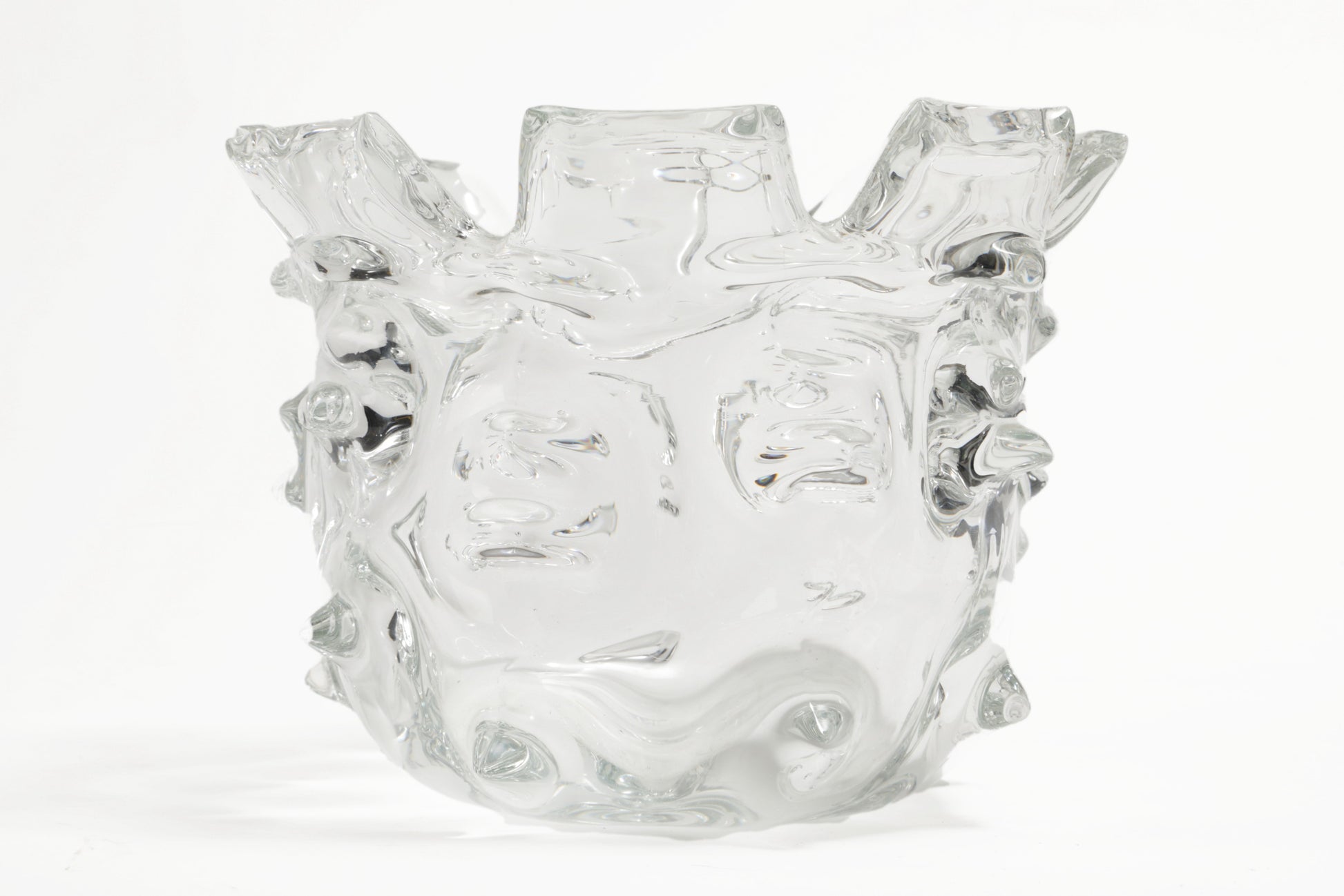 Vaso Barvoier & Toso anni 30, in vetro trasparente, lavorazione a mugnoni. Produzione Italiana.